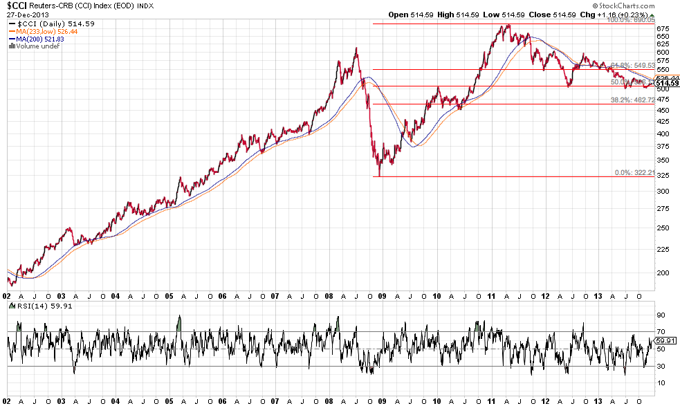 So there are my 2014 predictions, folks. I see lows in the commodities coming within the next 6 months. If there will be a major turnaround in these markets, I don't see it happening until the fall. Perhaps then the shit will really hit the fan, and I'll have to communicate next year's New Years post to you via ham radio.